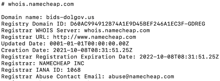 A WHOIS lookup surfaced a recently created phishing domain